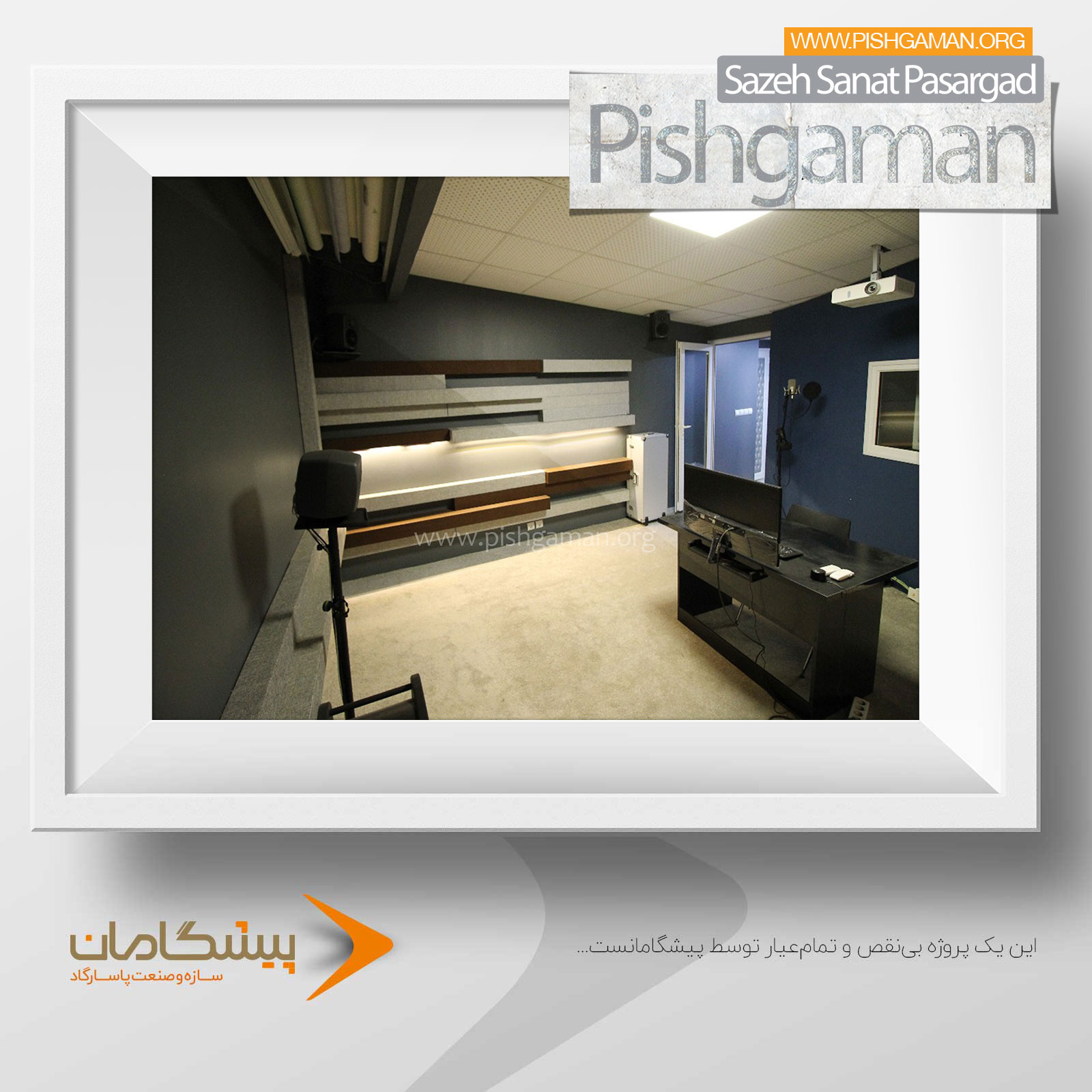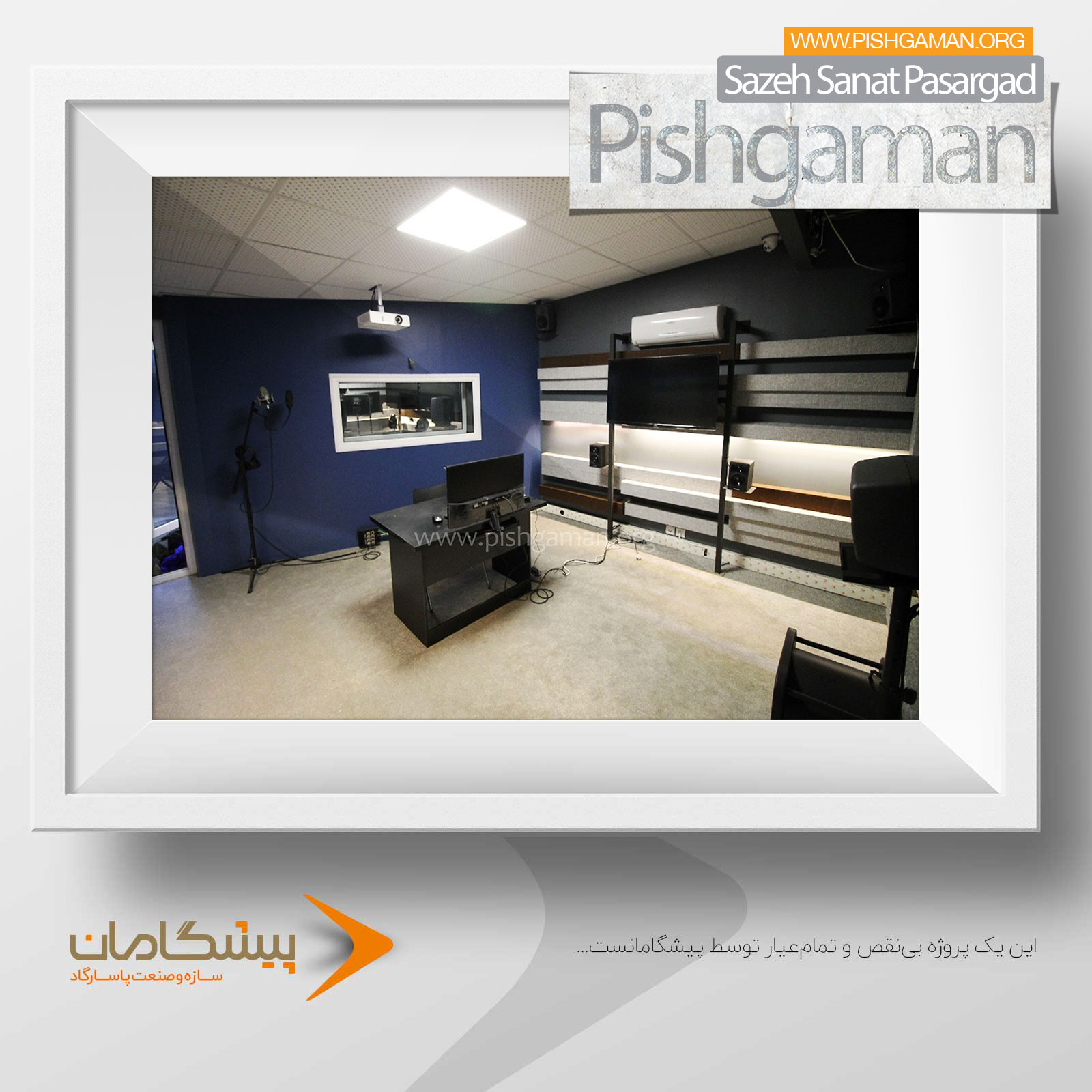 در ادامه، تصاویری از این پروژه تخصصی را با هم مرور میکنیم که نمایانگر کیفیت، دقت و توجه به جزئیات در طراحی و اجرای استودیوهای حرفهای توسط تیم پیشگامان است.